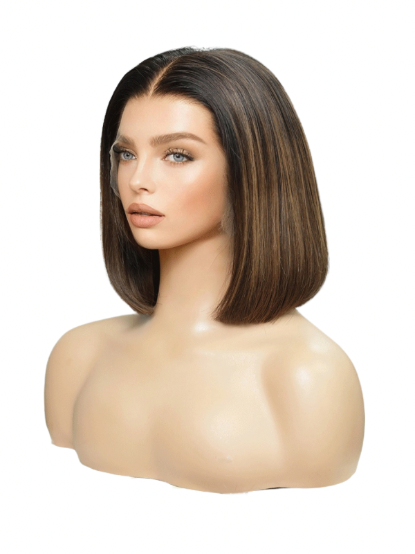 *Wig pictured is  in a customized style.  Wig is sent un-styled.